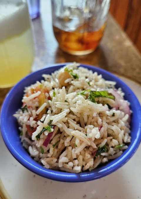 Over the summer, we vacationed on a dream trip to Nantucket, where we ate at Millie’s, a popular oceanside restaurant known for their incredible tacos and queso. But it was the side dish that I remember most — the Summer Rice Salad made with Basmati rice and a few ingredients that were so delightfully surprising: fresh mint and parsley, chopped tomatoes, chickpeas and red onion, seasoned with cinnamon, salt and pepper and a splash of lemon juice. This side dish was not an afterthought, but perhaps one of the best things I tasted on our entire trip.