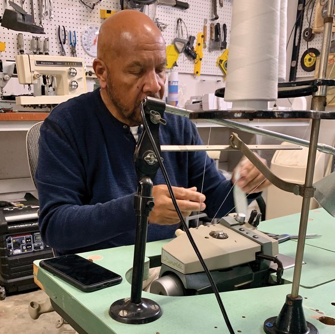 When his favorite one broke down, he taught himself how to fix it. Soon he was repairing machines for others — a hobby that turned into My Stitch Doctor, a small repair business. From there, he launched Woody Custom Leather where he began crafting leather goods and selling them locally, alongside his wife, Charlotte, and their sons, Jared and Jordan.